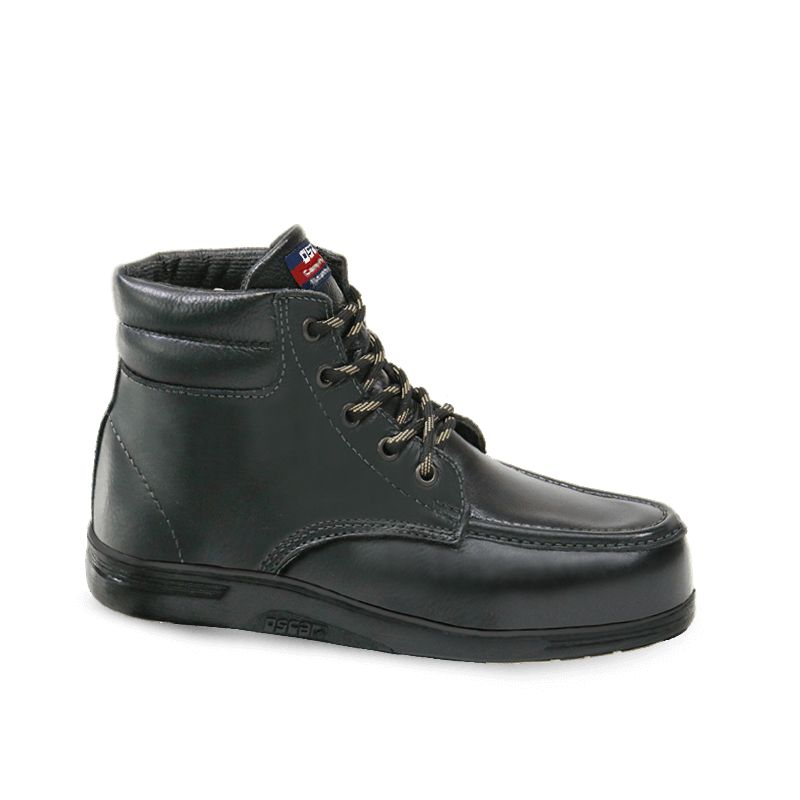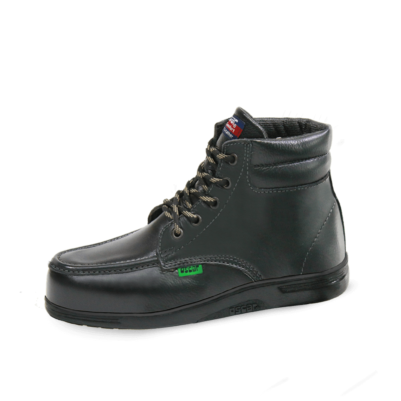 The Oscar 1904 Executive Black is a premium safety shoe designed for professional use. It features a Cow Nappa leather upper, ensuring both durability and a sleek appearance. The shoe is equipped with a steel toe cap for protection and a slip-resistant outsole for safety in various work environments.